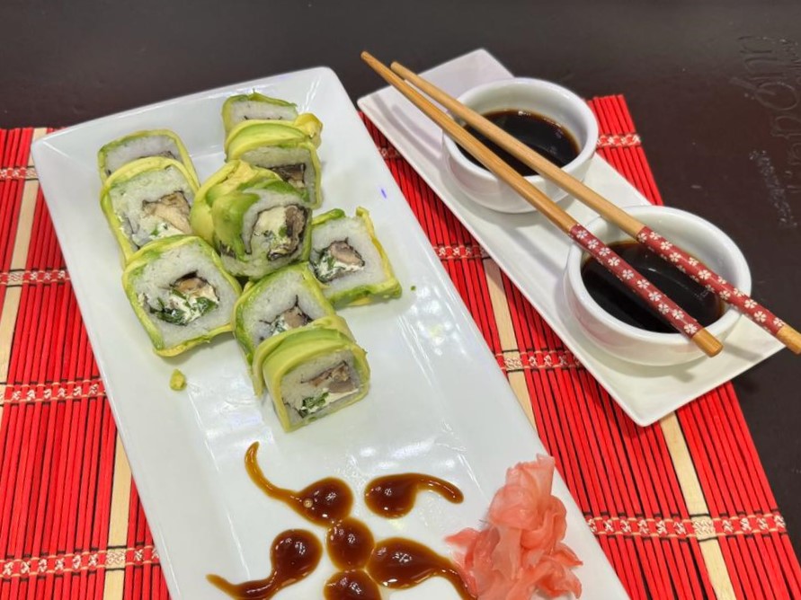 Relleno con espárrago, palmito, champiñón y queso crema. Envuelto en palta.